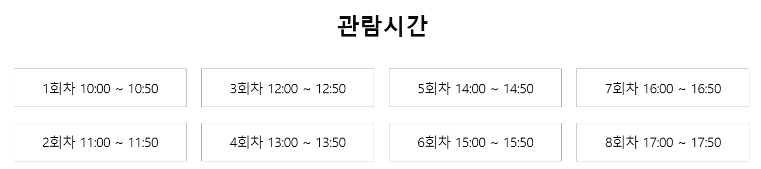 관람시간은 1회차 부터 8회차 까지 있으며